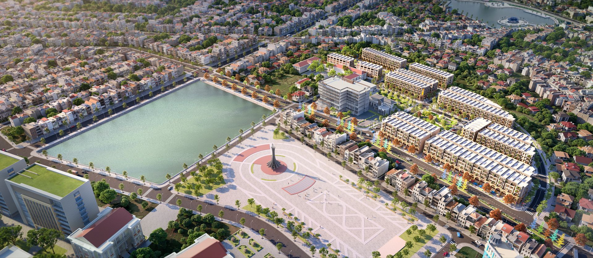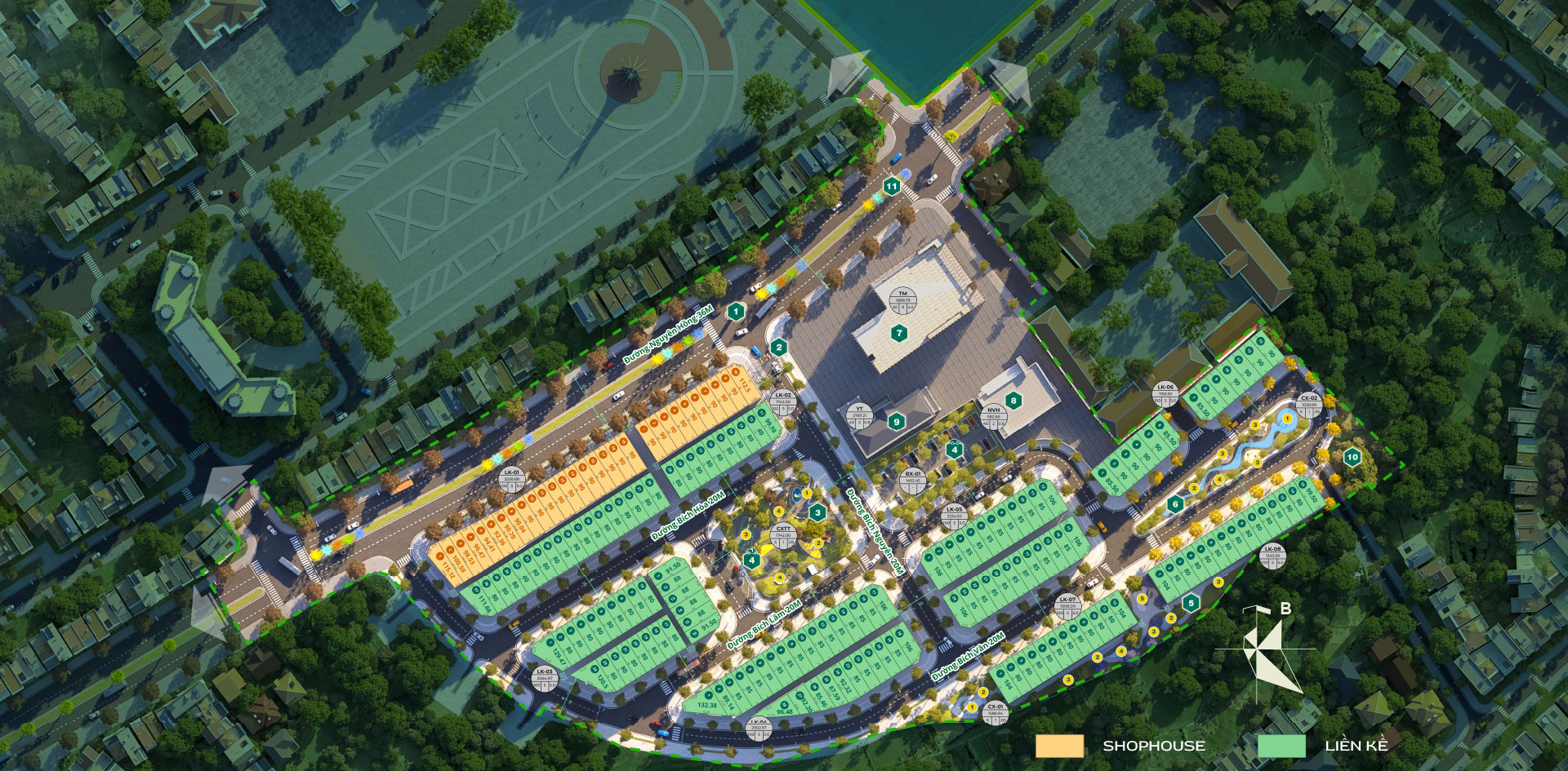 Toạ độ tinh tuyển giữa vùng lõi hành chính – bên quảng trường – cạnh trục quy hoạch Nguyên Hồng 36m.