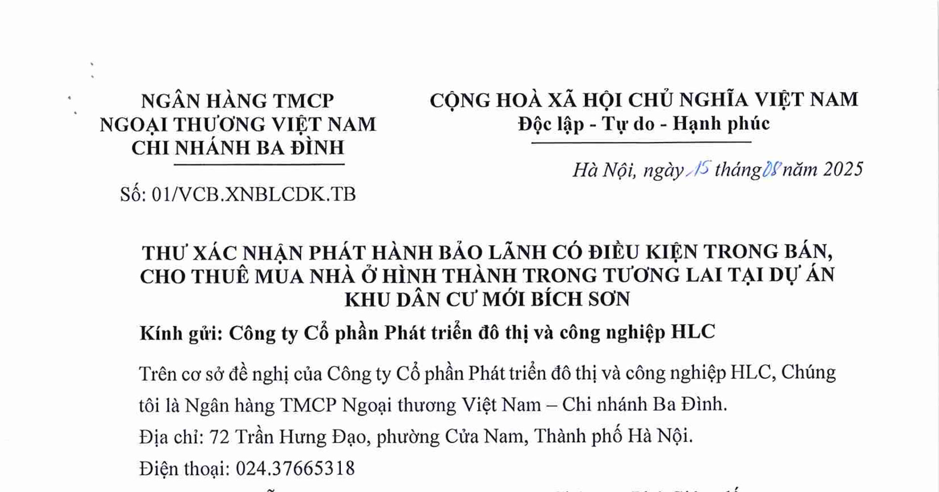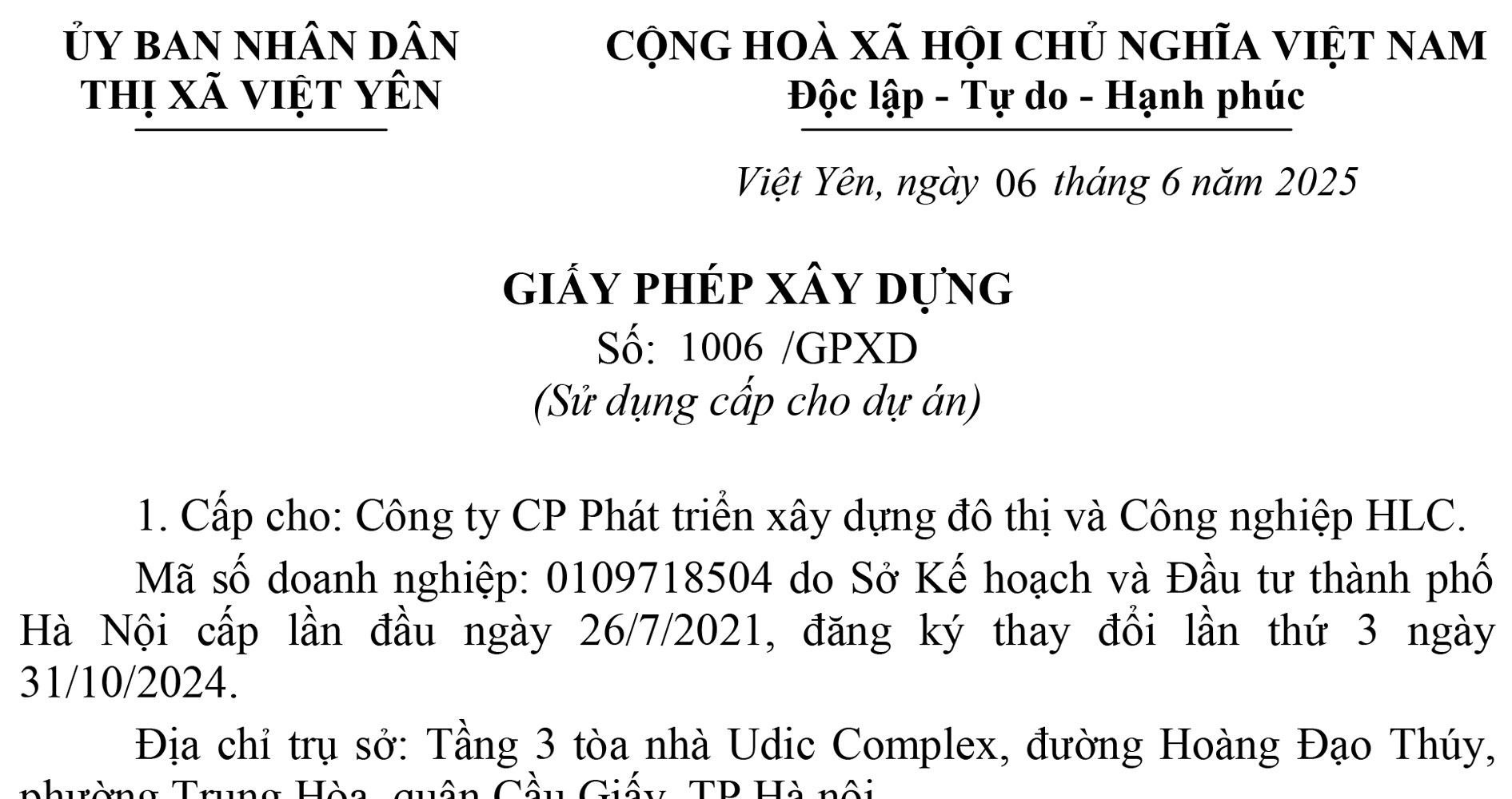 CHỦ ĐẦU TƯ: CÔNG TY CỔ PHẦN PHÁT TRIỂN XÂY DỰNG ĐÔ THỊ VÀ CÔNG NGHIỆP HLC